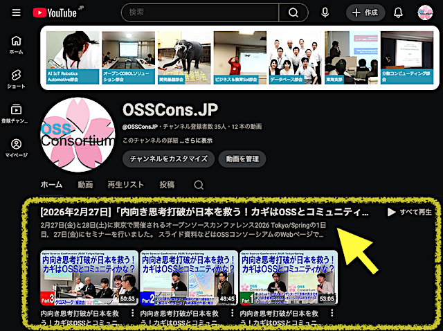 YouTubeのOSSコンソーシアムのチャンネルにまとめてありますのでご覧ください。今回は2部構成(Part 1〜2)で実施をしましたが,Part 1とPart 2は1本にまとめて公開しています。